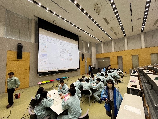 座学では、橋を作る目的や橋梁業界の多岐にわたる仕事について、具体的な事例を交えながら解説しました。生徒の皆さんは熱心に耳を傾けていました。