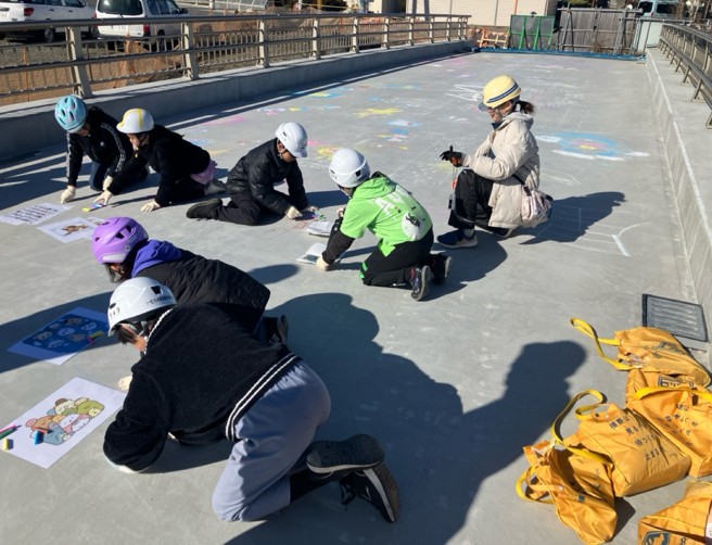 ・沼川1号橋床版上でチョークを使用してのお絵描き